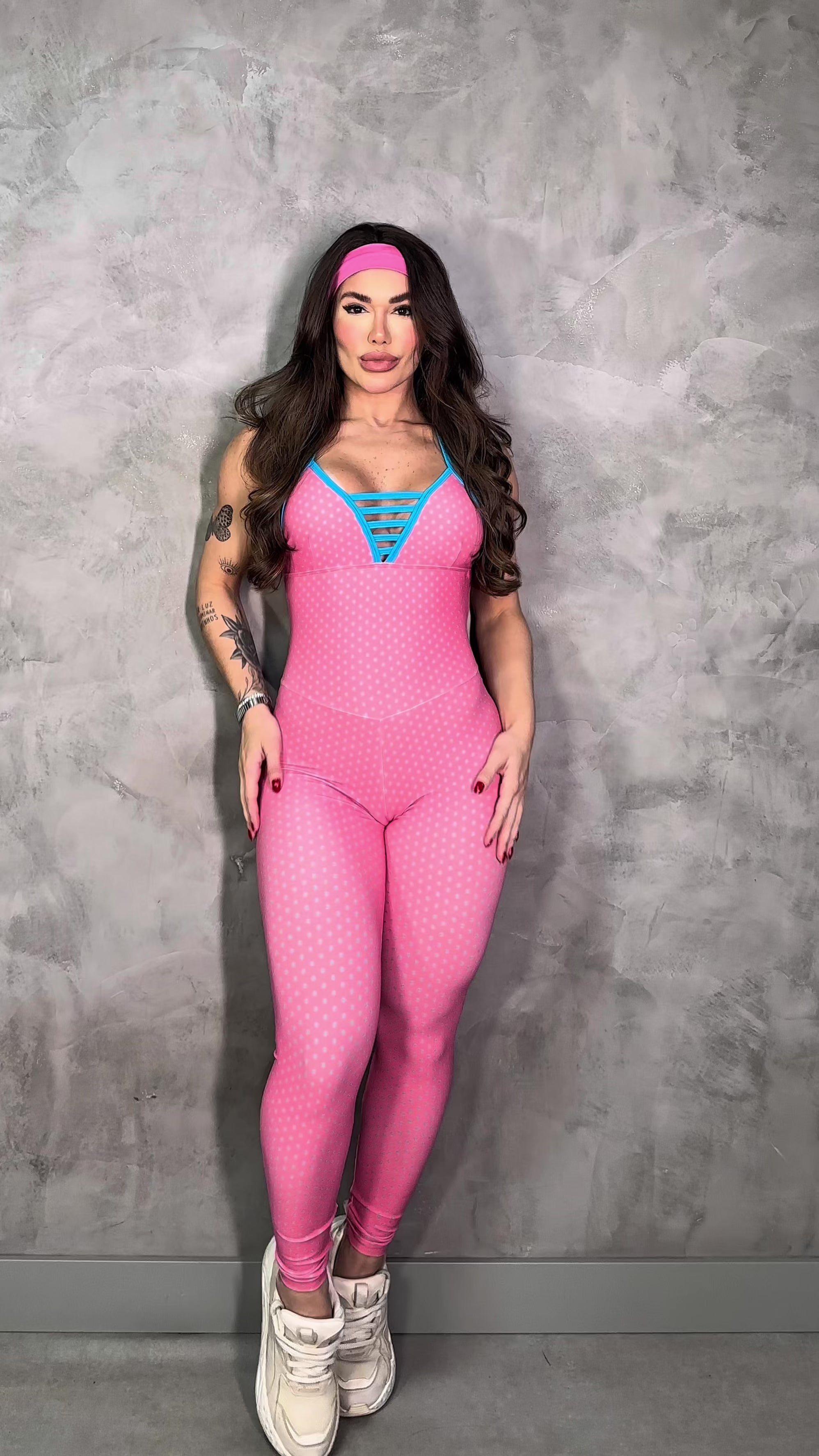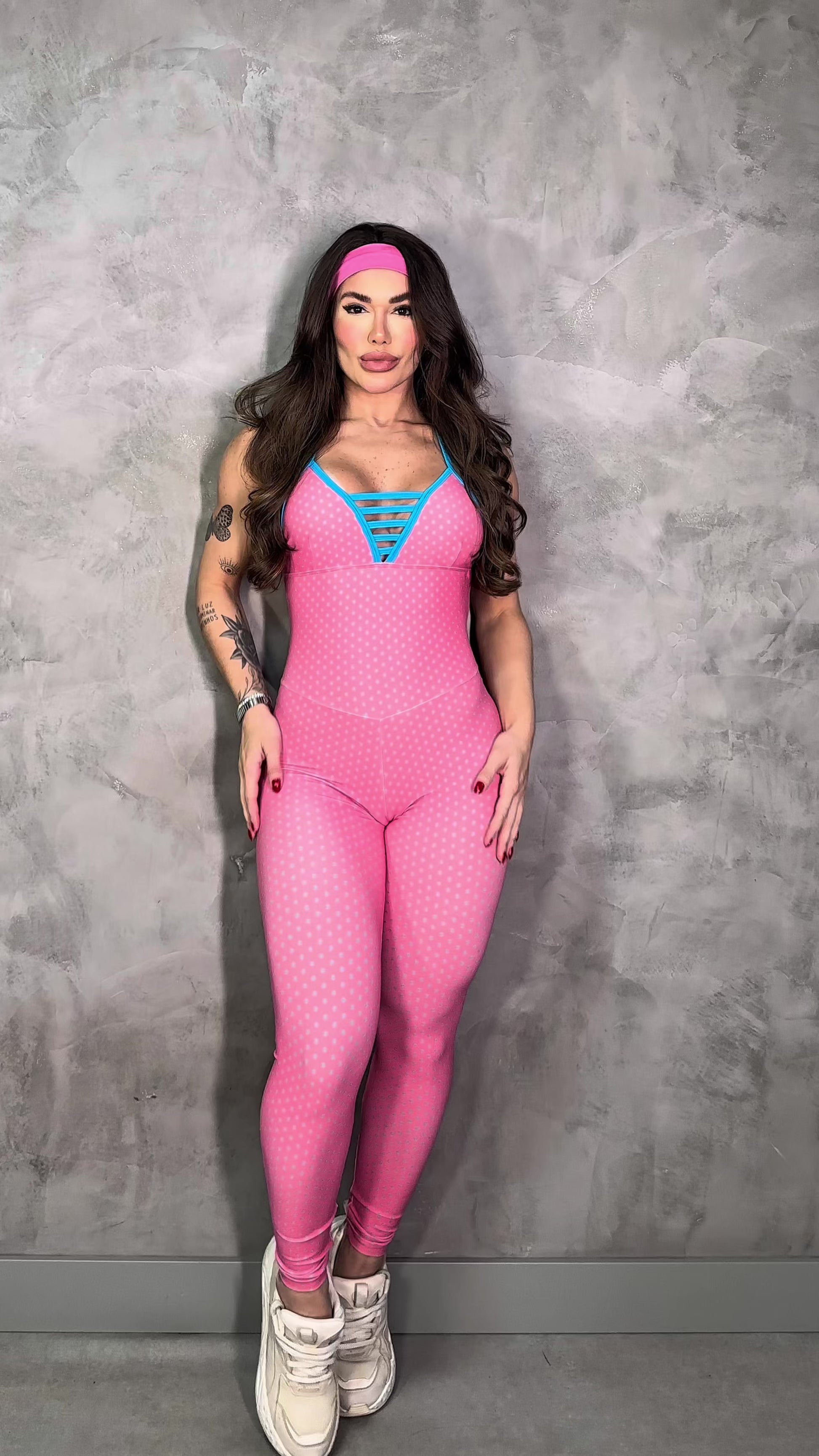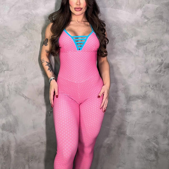 SCRUNCH BOOTY PINK POLK DOTS AND BLUE DETAIL JUMPSUIT